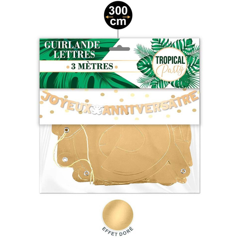 Inclus : 1 Guirlande joyeux anniversaire or de 3 mètres