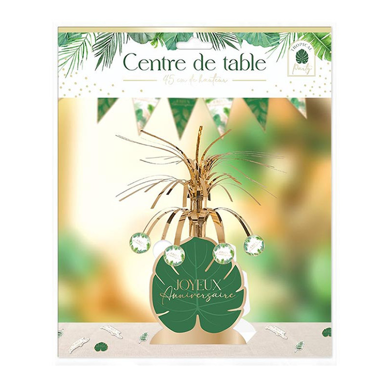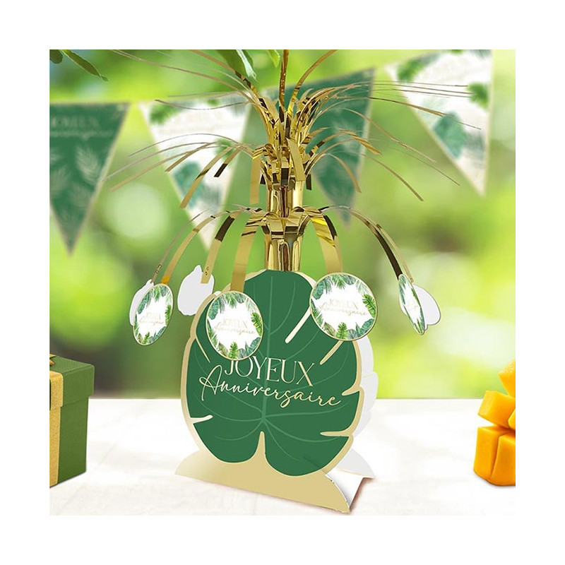 - 1 Centre de table joyeux anniversaire tropical 45cm