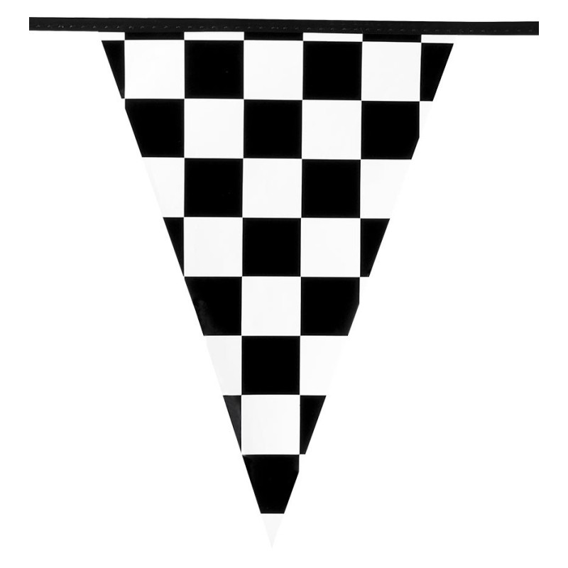 - 1 Guirlande fanion damier noir/blanc de 6m en plastique