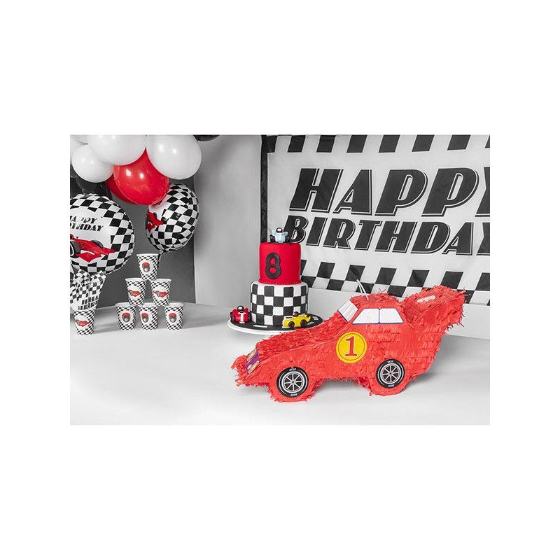 En plus de ce drapeau damier, nous proposons un choix immense en déco d'anniversaire voiture, vous trouverez également une gamme complète de vaisselle jetable en carton (gobelets, assiettes, serviettes en papier). Pour accompagner la vaisselle jetable, nous avons d'autres décorations comme de petits pics amuse-bouches, des guirlandes fanion, des nappes ou encore des ballons. Il y a tout ce qu'il faut pour organiser un anniversaire thème voiture.