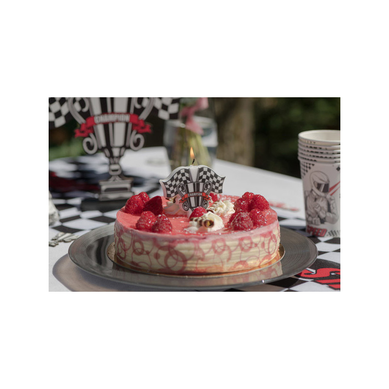 En plus de la bougie d'anniversaire sur le thème voiture, vous trouverez d'autres accessoires pour décorer la table, comme des confettis de table, des pics en forme de drapeau à damier, des centres de table, des nappes ainsi que des chemins de table. Également, plusieurs gammes de vaisselle jetable sont proposées sur le thème des courses de voitures. On y trouve généralement des assiettes cartonnées, des serviettes en papier, ainsi que des gobelets en carton. C'est idéal pour une fête d'anniversaire.