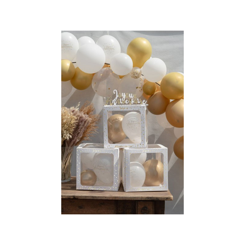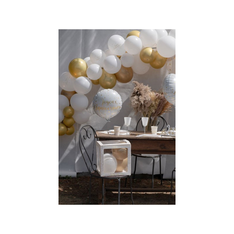 - 1 boîte à ballons anniversaire blanche et or 30x30x30cm
