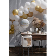 Boîte à Ballons Anniversaire blanc/or 30x30x30 cm