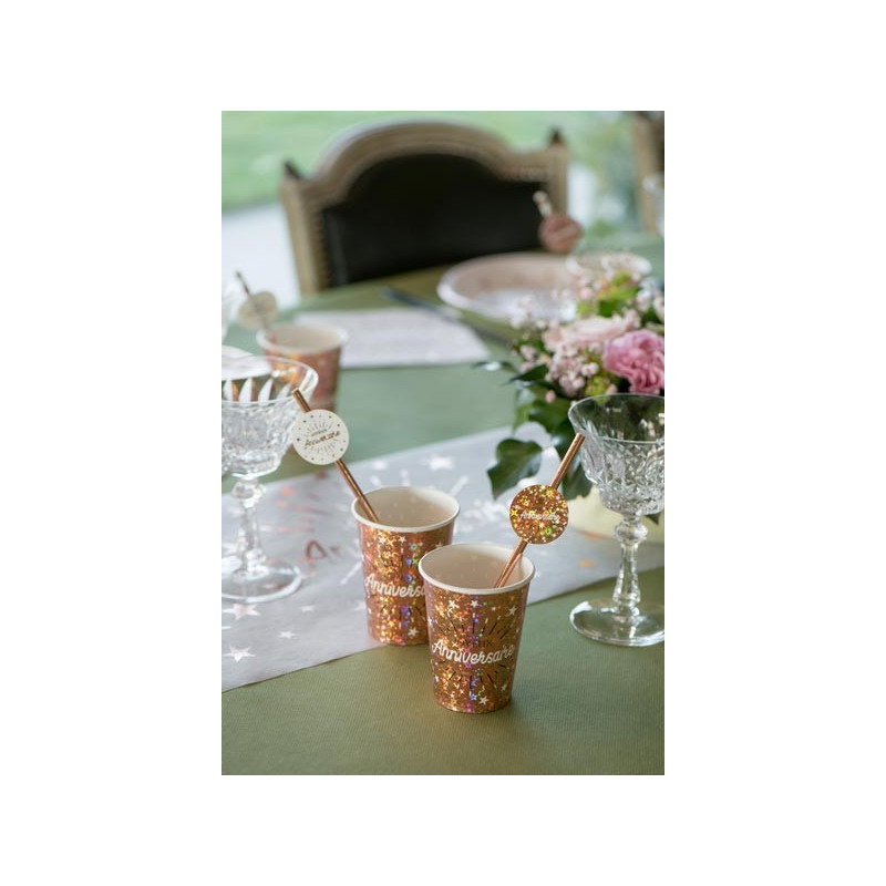 Paille Joyeux Anniversaire Carton Rose Gold x8