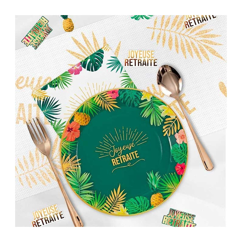 Pour compléter votre déco de table retraite, vous trouverez sur notre site de nombreux autres accessoires décoratifs pour les tables comme des pics à mettre sur les gâteaux, des chemins de table, des confettis de table, des tops décoratifs ou encore des centres de table pour la retraite.