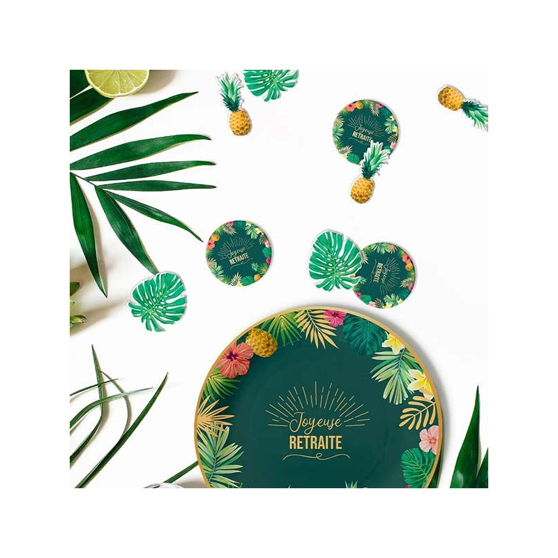 Pour accompagner ces confettis retraite sur la table, vous trouverez d'autres décorations thème départ en retraite comme des chemins de table, des marque-places, des centres de table ou encore des tops pour décorer le gâteau de départ à la retraite.