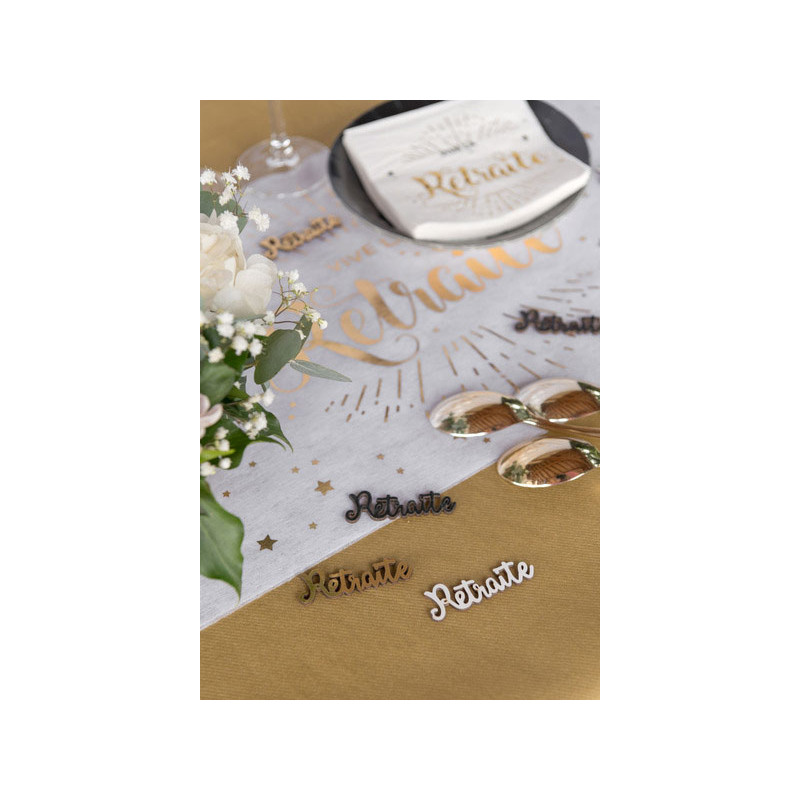 - 10 confettis retraite en bois 6x2cm or/noir/blanc