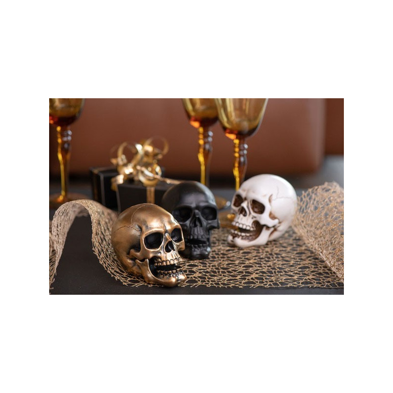 - 1 Tête de mort noir mat à poser Halloween 10.5x9cm