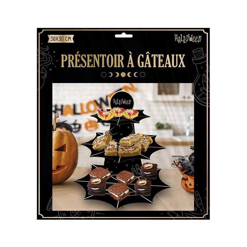 Inclus : 1 Plateau à étages pour gâteaux Halloween en carton 30x30cm