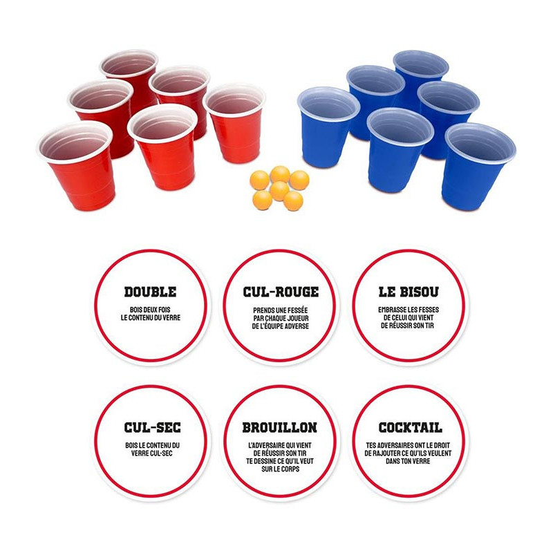 Inclus : 12 gobelets, 6 balles, 6 dessous de verre