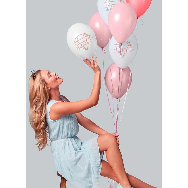 Inclus : 2 Ballons roses, 2 ballons rose gold, 2 ballons blancs décorés EVJF