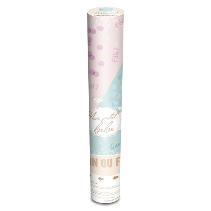 - 1 canon à confettis gender reveal garçon de 38x5cm