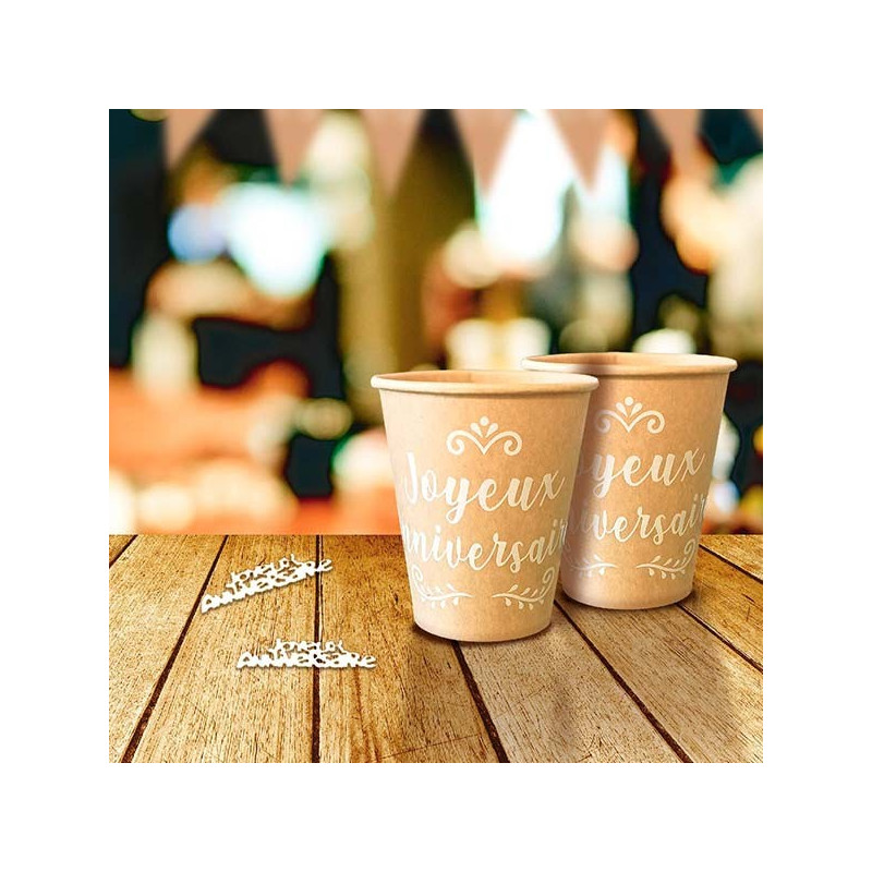 - 6 Gobelets joyeux anniversaire en carton 25cl