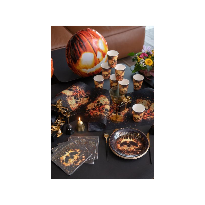 Ces gobelets crânes en feu sont assez originaux, pour les accompagner sur une table, vous trouverez de nombreux accessoires décoratifs comme des crânes à poser, des squelettes, des chemins de table, des bougies, des confettis de table... Grâce à la vaisselle jetable Halloween et aux nombreux accessoires, il sera très facile de créer une table d'Halloween qui rappellera les enfers !