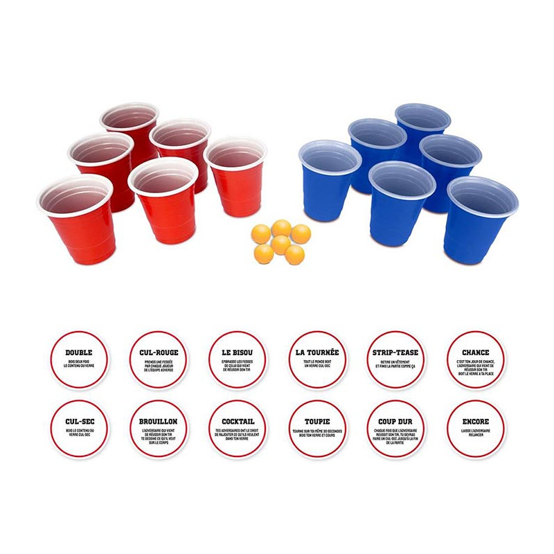 Inclus : 6 balles, 12 cartes gages, 12 verres
