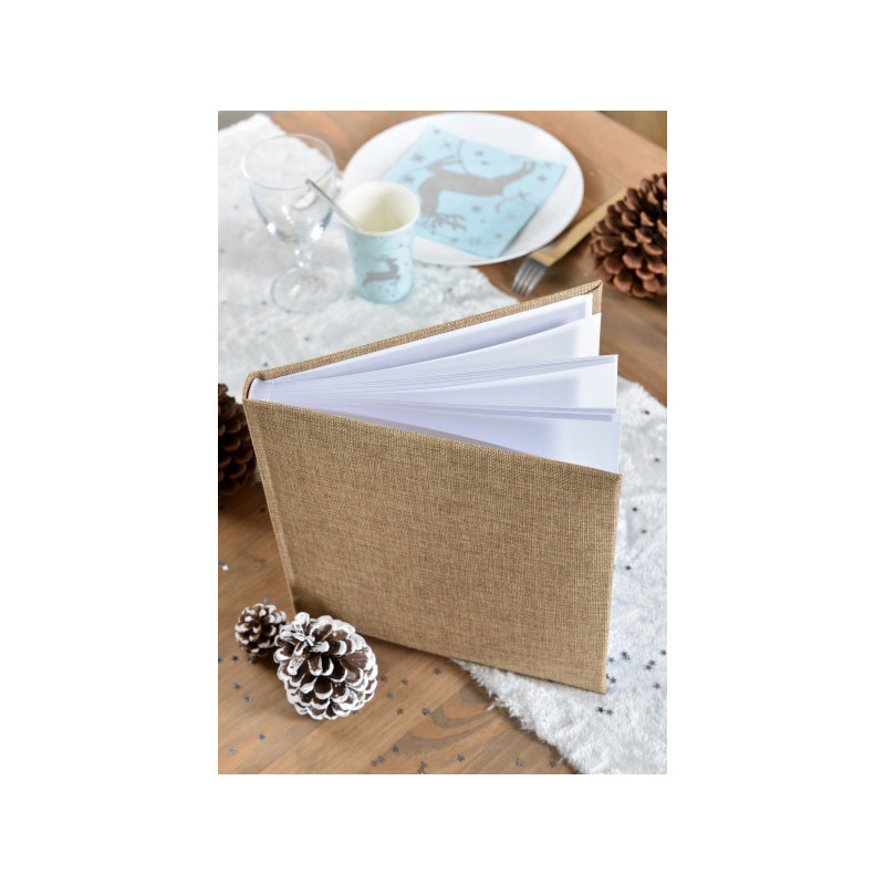 - 1 Livre d'or toile de jute 25x25cm avec 20 pages blanches