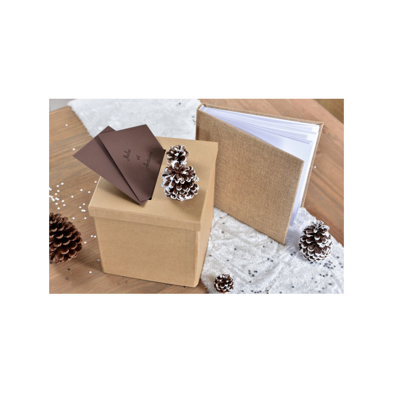 Inclus : 1 Livre d'or toile de jute 25x25cm avec 20 pages blanches