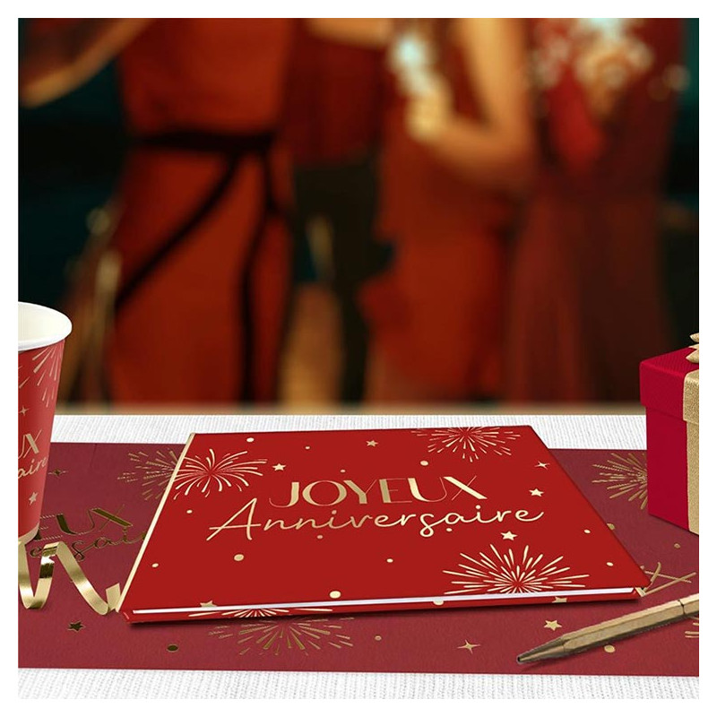 Inclus : 1 Livre d'or anniversaire rouge/or 20 pages, 21,5x15,5cm