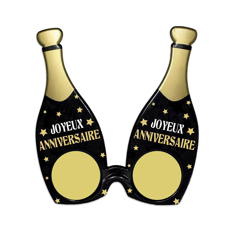 - 1 paire de lunettes anniversaire en forme de bouteille, noir/or
