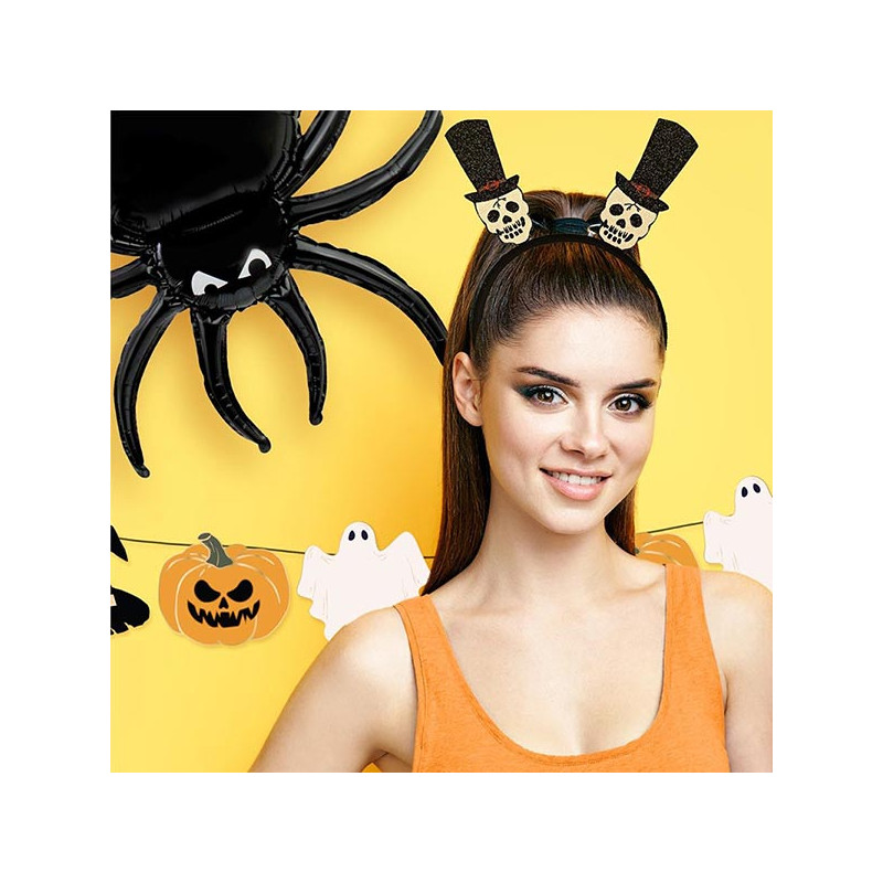 Inclus : 1 Serre-tête Halloween squelette pailleté adulte
