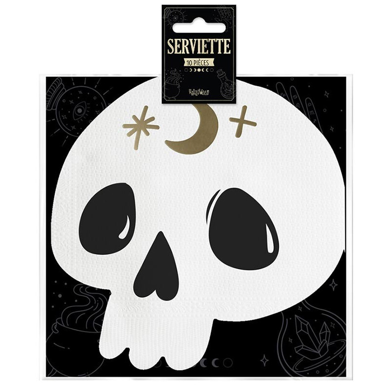 Inclus : 10 serviettes tête de mort Halloween