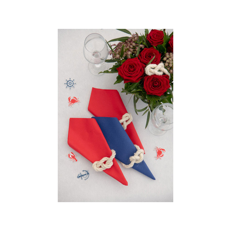 Dans notre rubrique dédiée aux serviettes jetables, nous proposons aussi ce grand modèle airlaid en rouge, blanc, vert, noir, rose, sauge et or. Pour accompagner les serviettes, vous trouverez des assiettes en cartons compostables assorties, ainsi que des gobelets et des chemins de table bleus airlaid. Pour avoir une table à 100% éco-responsable, nous avons des couverts en bois ou en papier compressé. Il y a tout ce qu'il faut pour composer une table festive et éco-friendly à l'occasion d'un évènement.