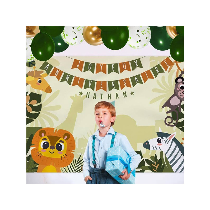 Toile de Fond Anniversaire Jungle Personnalisable