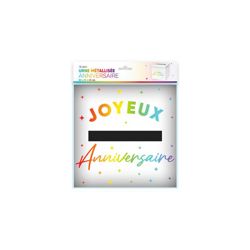 Inclus : 1 Tirelire anniversaire multicolore métallisée 20x20x20cm