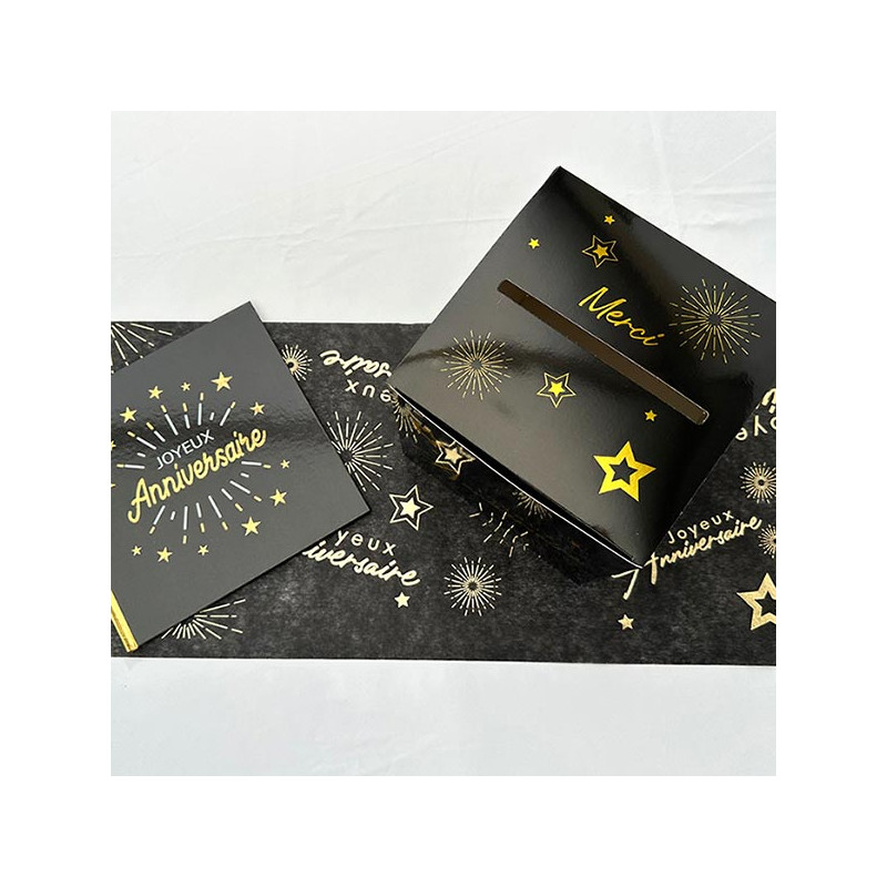Inclus : 1 Urne anniversaire noir et or en carton 20x20x20cm