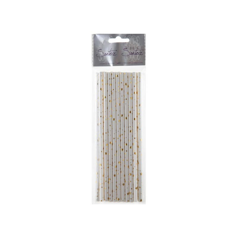 - 20 Pailles blanc/or en carton 19cm